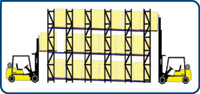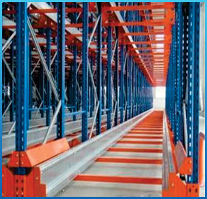 Drive-In pallet racking allows you to store number of pallets in depth similar to block stackingIt allows product of a single SKU to be stored in the same lane. It enables maximum use of space & increase storage capacity as number of aisle required are minimum. Drive-In Racks allow a lift truck to enter the rack from one side to pick up or pull out pallets. Picking and replenishment is facilitated by means of conventional forklift trucks, keeping costs to a minimum.Drive-In racks are typically subject to more abuse than selective racks due to the way they are utilized, so rack integrity and strength are important factors.Ideal solution for homogeneous products with large number of pallets per SKU. It is ideal rack for cooler or freezer applications.